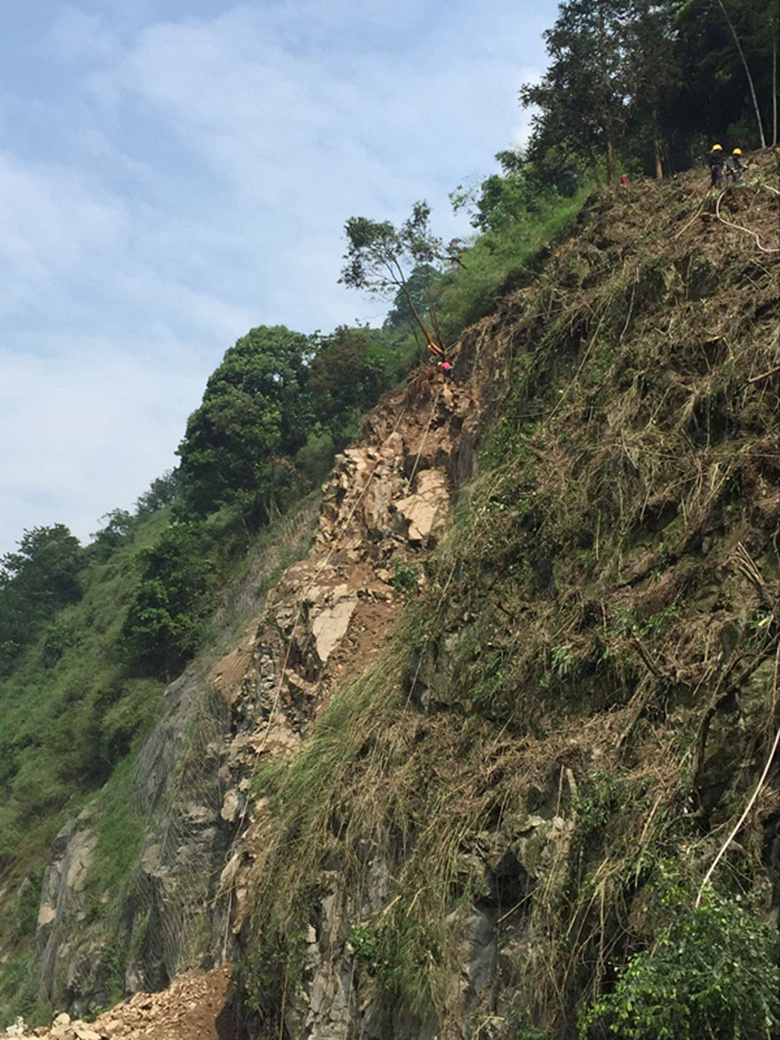 雅安市交通運輸局、公路局、天全縣交通運輸局11日緊急委托我院下屬的地質工程公司承擔國道318線天全縣小河鄉月亮灣崩塌應急搶險工程的方案設計及應急搶險施工工作。接受任務后,國道318線地質災害防治工程項目組緊急進場,迅速開展災害點坡面植被清理、應急調查、測繪及其周邊裂縫監測等工作。
