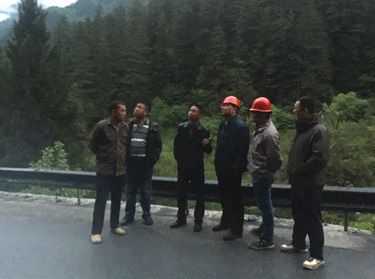 險情發生后,九寨溝國家級自然保護區管理局劉春龍局長、業主代表澤軍、我院九寨溝89處地災治理項目部現場總協調人陳新、二標段執行經理何海清緊急趕到現場,共同商討對于該危巖的排危方案。