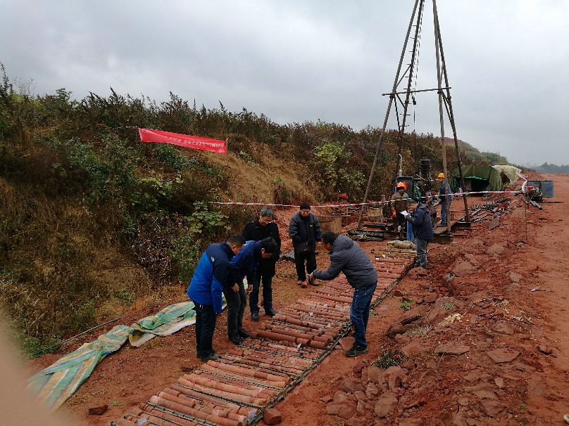 隨后,錢江澎、劉宗祥一行對項目2018年先期啟動塊的四個鉆孔進行了質量檢查。通過對現場鉆探點的全面檢查,錢總強調一是要高度重視生產施工過程的安全問題,加強項目規范化管理;二是在野外調查過程中要確定填圖分組、分段標志,統一風化程度判別標志;三是鉆探工作需標準化編錄格式,及時采集巖土樣,同時對特殊巖芯樣可采用特寫、小視頻記錄方式保存。